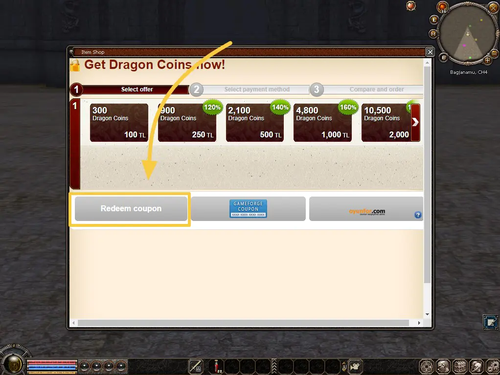 اذهب إلى قسم القسيمة: من القائمة على اليسار، اختر خيار "Redeem Coupon" (Kuponu Bozdur).
