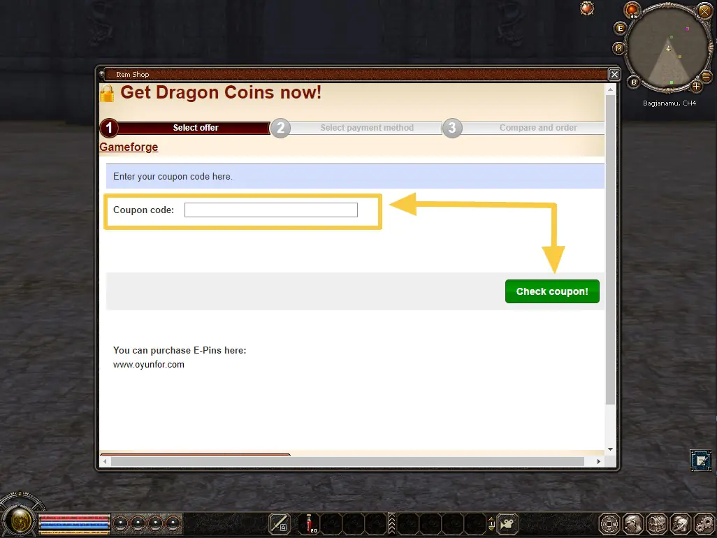 فعّل الرمز الخاص بك: الصق الرمز الذي حصلت عليه من OyunX في الحقل واضغط "Check Coupon." بعد التأكيد، سيتم إضافة Dragon Coins إلى حسابك فورًا.