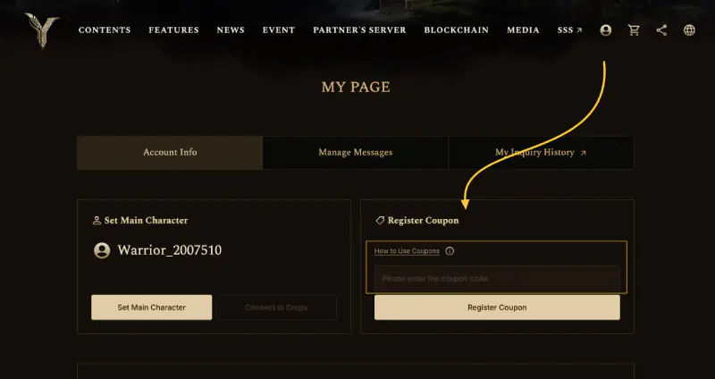 คุณสามารถใช้รหัสคูปอง Legend of YMIR (บัตรของขวัญ/รหัสกิจกรรมพิเศษ) ที่ซื้อจาก Lotkeys.com ได้โดยทำตามขั้นตอนด้านล่างนี้
